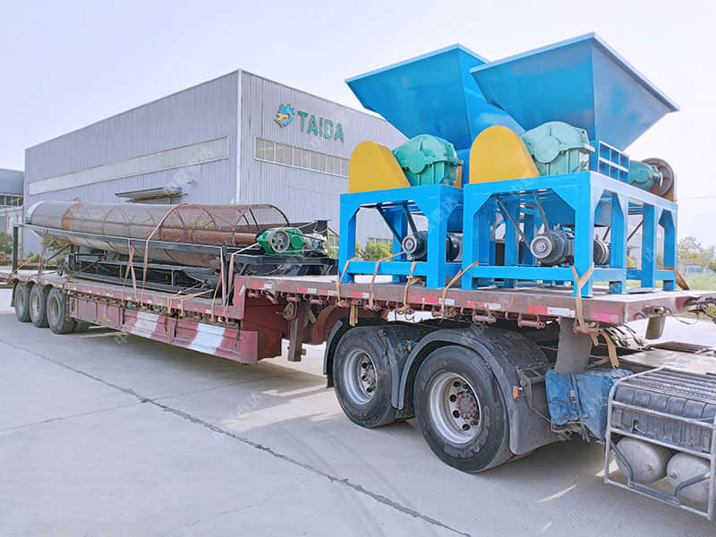 600型撕碎機(jī),配套10米長(zhǎng)交易滾筒篩發(fā)貨
