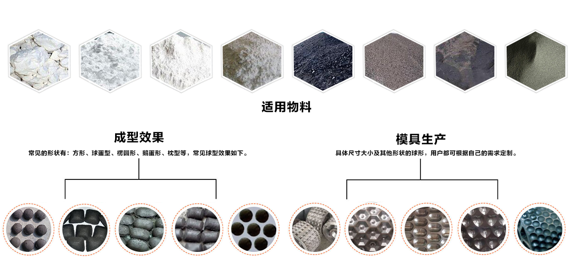 高壓壓球機可對多種材料進行壓團或壓球,如紅土鎳礦、生石灰粉、白云石粉、氧化鎂粉、銅精粉、鉻礦粉、錳礦粉、鉛鋅廢料、鋁釩土、有色金屬粉末、耐火料、陶瓷料、鋼廠含鐵粉料、轉爐污泥、氧化鐵粉、鐵皮等,其目的在于減少粉塵,控制容重,返回利用,改進運輸特性等。主要用于煤炭、礦山、冶金、耐火材料、化工、建材等行業。