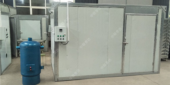 泰達節能烘干房主要包括烘箱、推測、烘干托盤組成,烘箱側部設有電加熱器,烘箱頂部設有通風口,烘箱的一端設有進出料通道,烘干房主體集成了控制箱,結構簡單,通過溫度傳感的設置,使烘箱內溫控更加簡單靈活,提升烘干機的烘干質量效果和使用經濟效益。